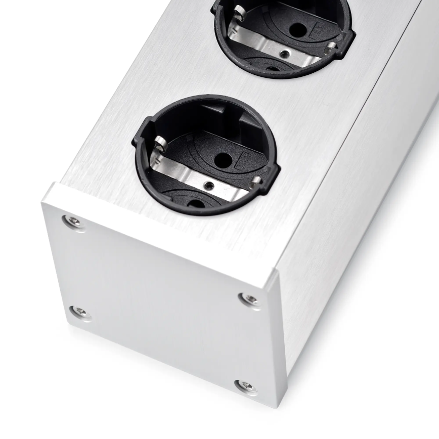YesUtmärkt ljud börjar med strömförsörjningen – och det är just här AC-3200-grenuttaget med integrerad DC-blockerare kommer in i bilden. Det filtrerar störande likströmskomponenter (DC-offset) från elnätet och säkerställer en symmetrisk spänningsförsörjning. Ringkärntransformatorer drar särskilt nytta av detta: surrande ljud förhindras effektivt, effektiviteten ökar och distorsionen minskar. DC-blockertekniken skyddar också transformatorerna från magnetisk mättning – ett tillstånd som inte bara orsakar brus utan också kostar ström och kan försämra ljudkvaliteten.
