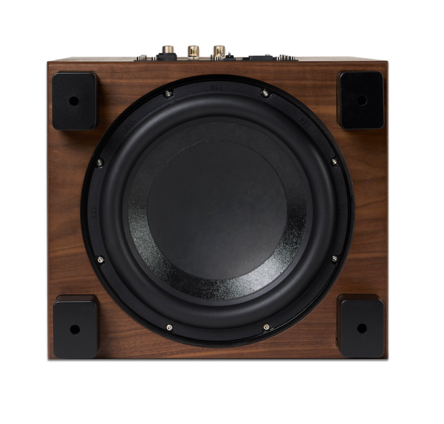 Classic 99 adopts the form language introduced in its model 98 stablemate. As comfortable as a pair of well-worn loafers, it features solid cabinet walls as thick as 32 mm, clad in rich, warm walnut veneer, hand fitted with care. The simplest of natural aluminum badges and softly radiused feet milled from solid billet, blacked out to allow it to seemingly float, ensure that nothing, not even a grille disturbs the vibe. Yet, as with all RELs, the styling conveys far more than simple comfort. The down-firing 12” driver, while unseen, will surely be felt. Continuing to the rear panel, one finds the period-correct detailing extends to the amplifier panel, where all controls are finished in lovely white gold. Everything that one encounters has the heft of quality switch gear, even the click made by the phase switch is near perfection. Quality abounds everywhere one looks or touches. Don’t be surprised if your children fight over it later in life.