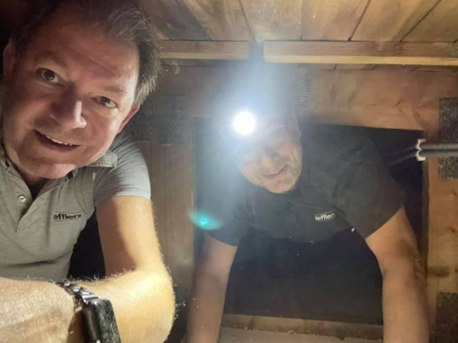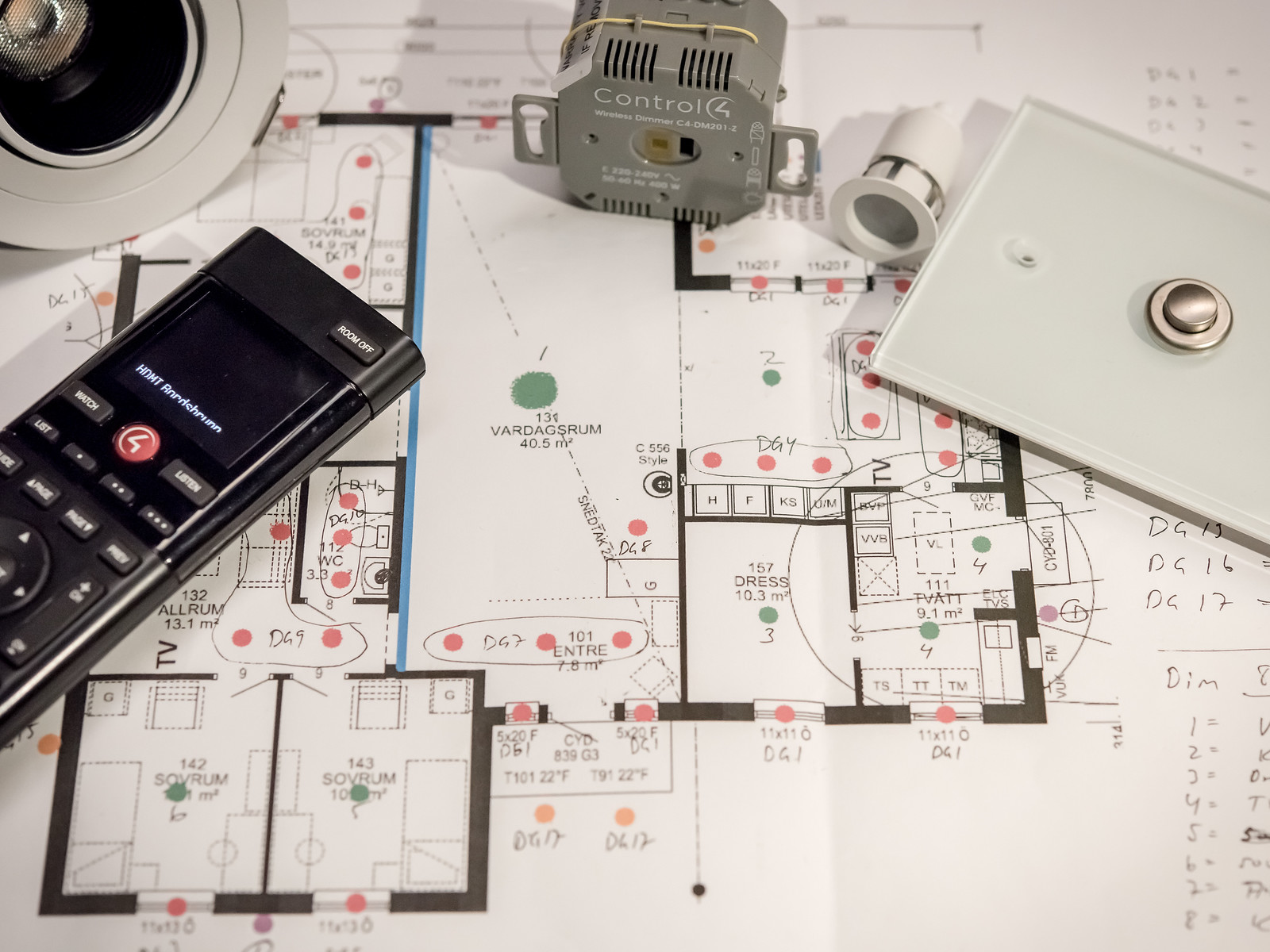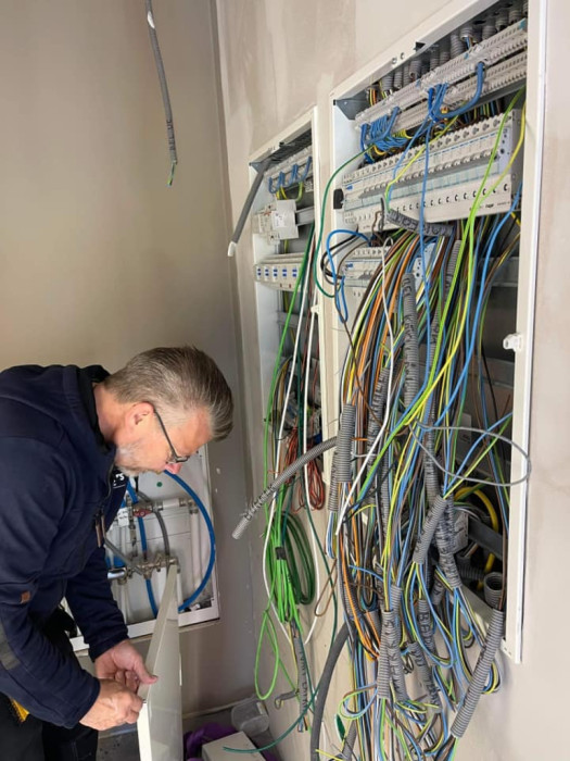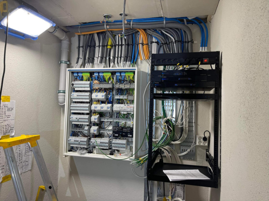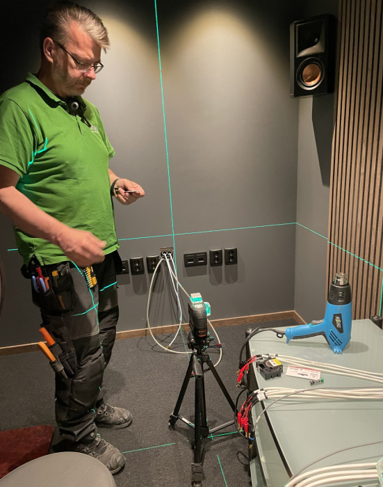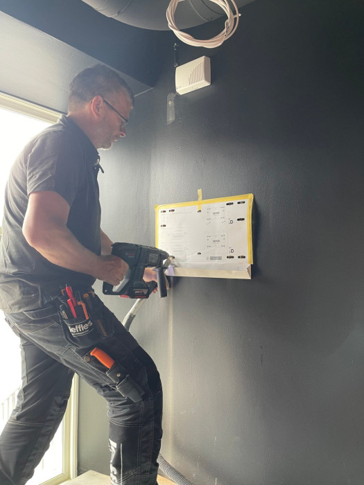 Här kontrollerar vi att ritningen stämmer med verkligheten och går igenom kabeldragningen med elektrikern.