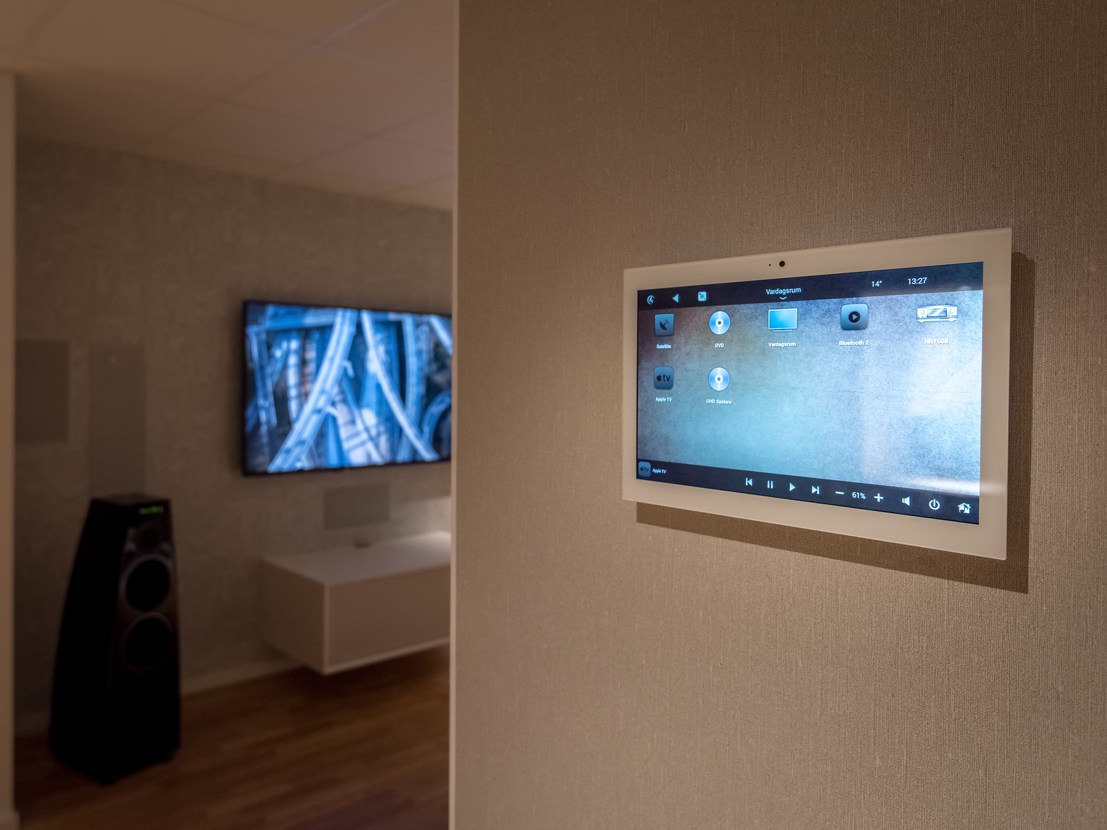 Där har vi möjlighet att visa alla de funktioner vi ofta pratar om såsom "hemma borta knapp", en fjärrkontroll, ljusstyrning, larm, videoövervakning, mm. Här hittar vi oftast nivån på projektet.